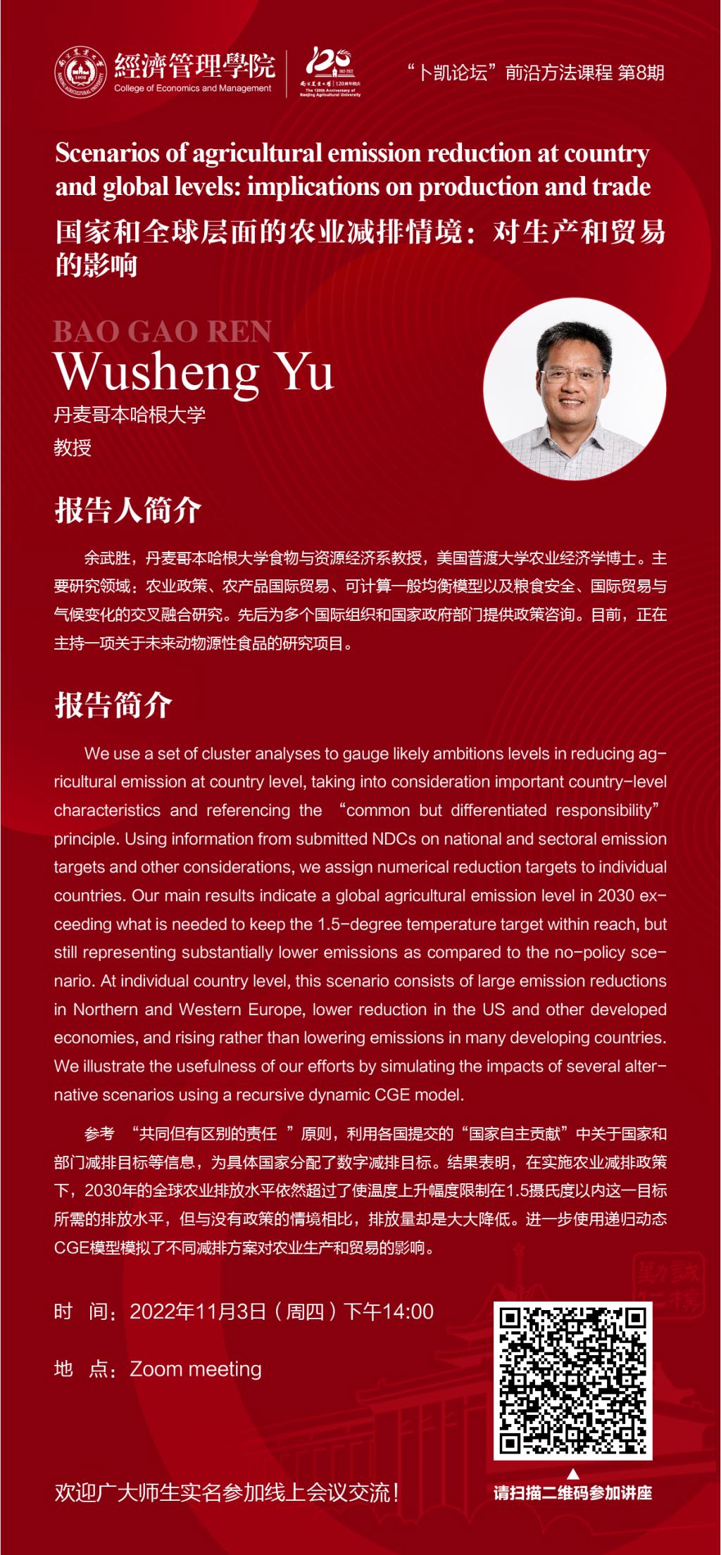 题 目:Scenarios of agricultural emission reduction at country and global levels: implications on production and trade
