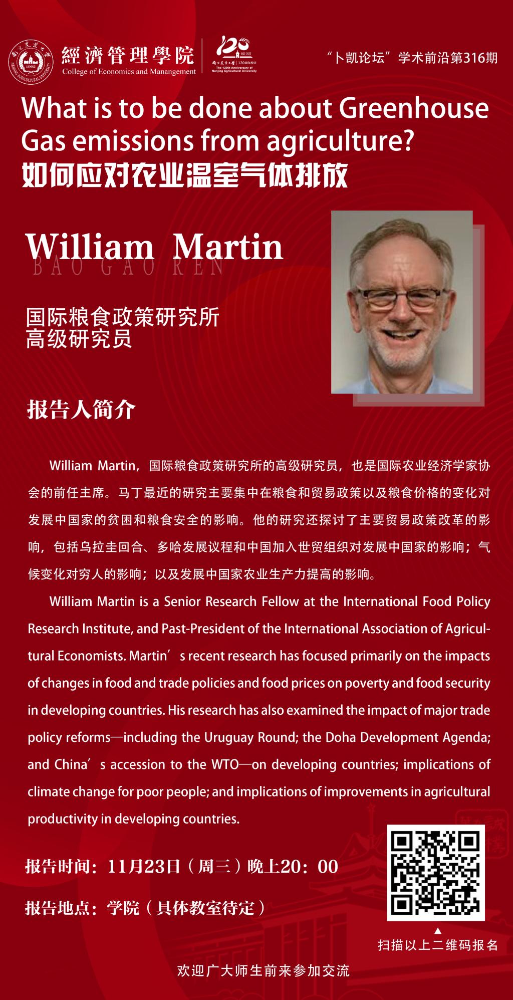 William Martin是国际粮食政策研究所的高级研究员,也是国际农业经济学家协会的前任主席。马丁最近的研究主要集中在粮食和贸易政策以及粮食价格的变化对发展中国家的贫困和粮食安全的影响。他的研究还探讨了主要贸易政策改革的影响,包括乌拉圭回合、多哈发展议程和中国加入世贸组织对发展中国家的影响;气候变化对穷人的影响;以及发展中国家农业生产力提高的影响。