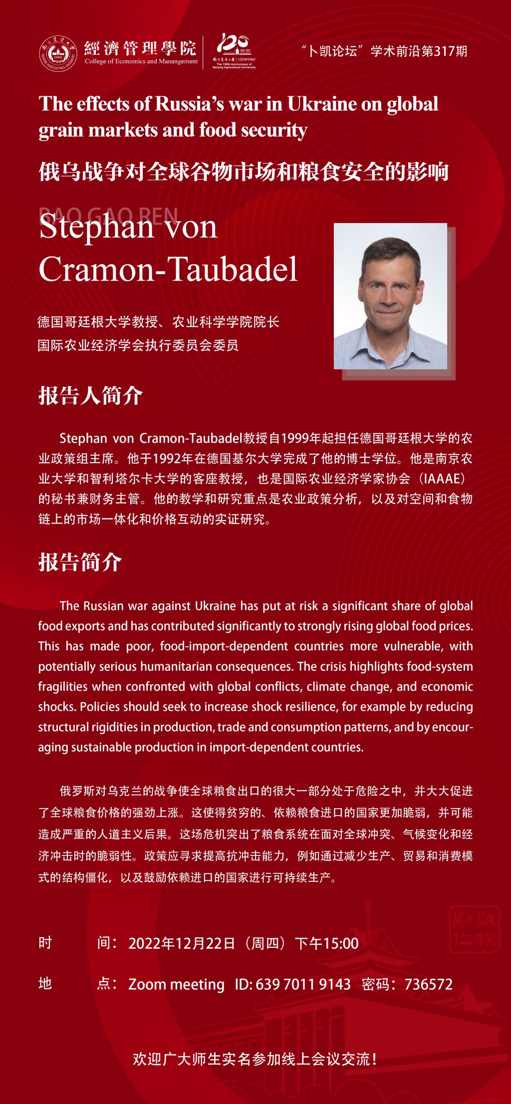 报告人:Stephan von Cramon-Taubadel