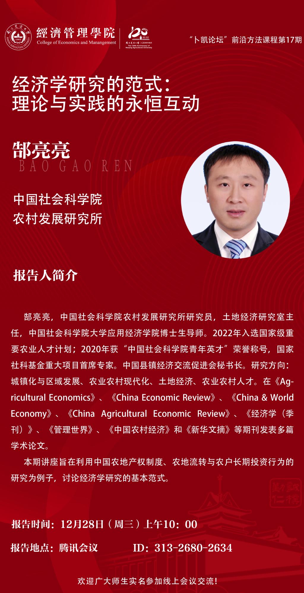 报告人:郜亮亮中国社会科学院农村发展研究所研究员