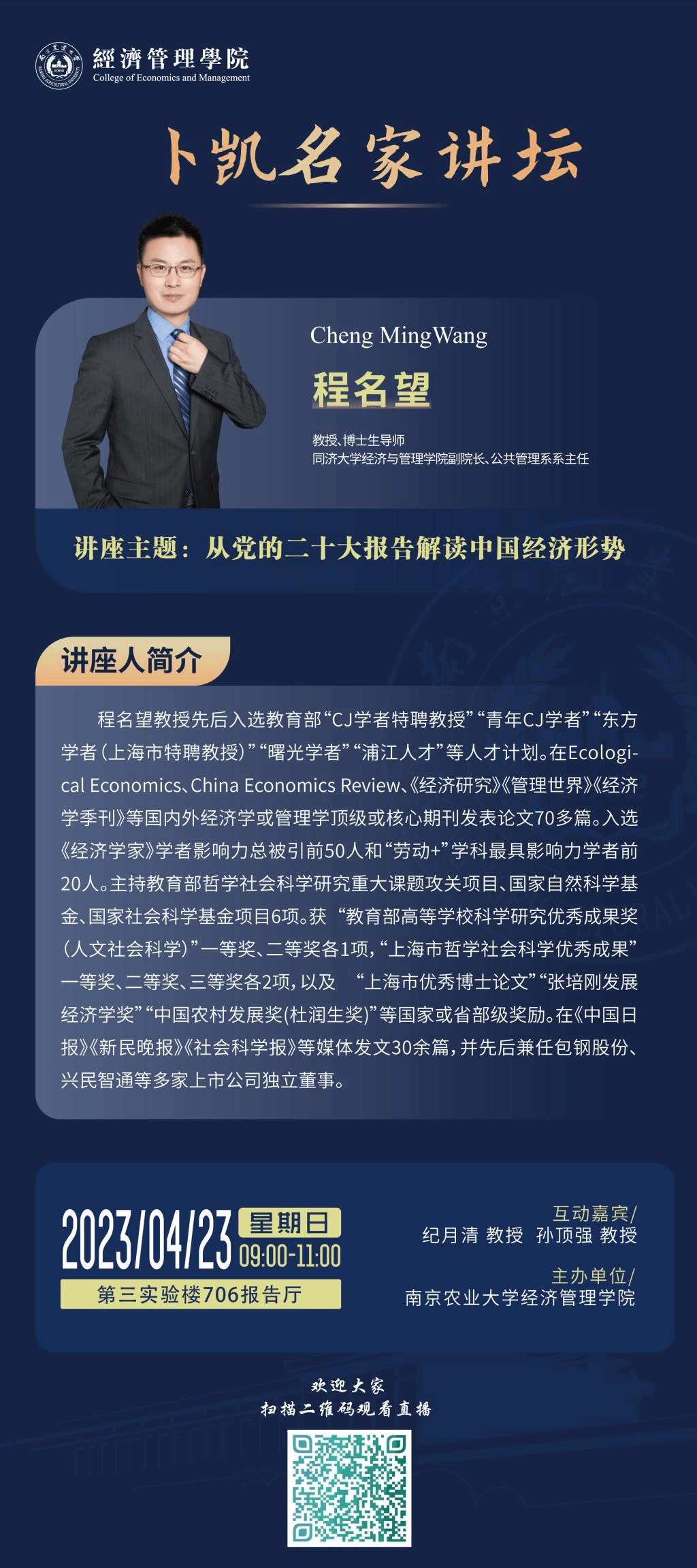 :程名望同济大学经济与管理学院副院长、教授