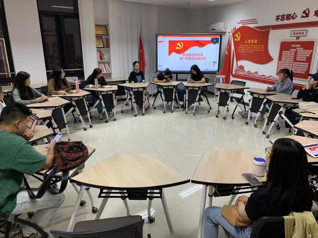 9月26日晚,专业硕士研究生第一党支部在第三实验楼725党员实境教室开展了“奋斗百廿路 喜迎二十大”主题党日活动,会议采取线上线下相结合的方式进行,党员与积极分子共计40人参与本次活动。