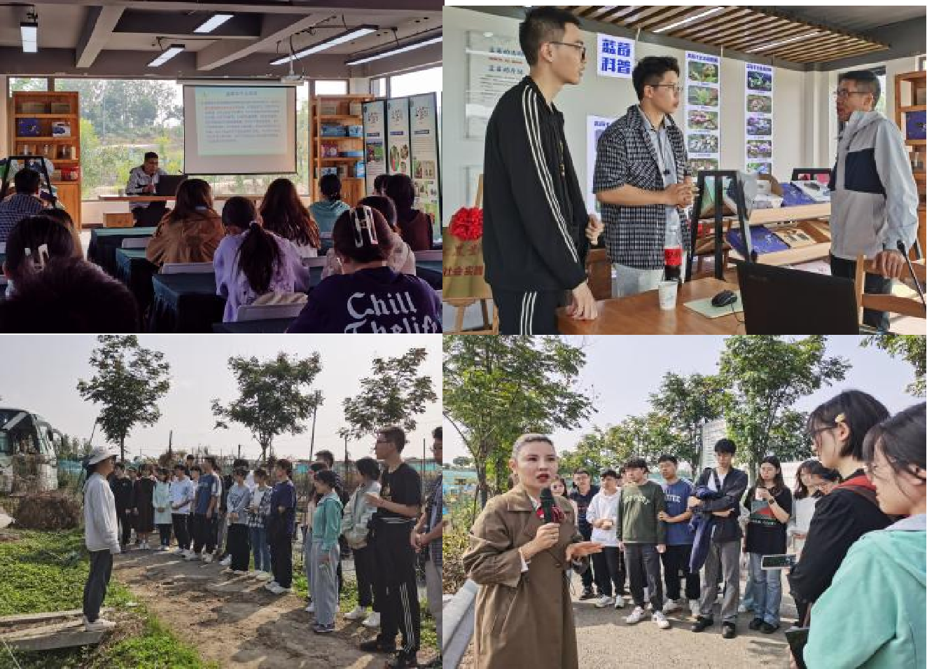 学生们在农场主的组织下,与蓝莓生产技术专家交流技术推广应用中的难题与解决方案,实地考察了基质蓝莓培育田,比较了不同生产技术条件的经营绩效,听农场主讲述了自己返乡创业、投身“三农”的经历。