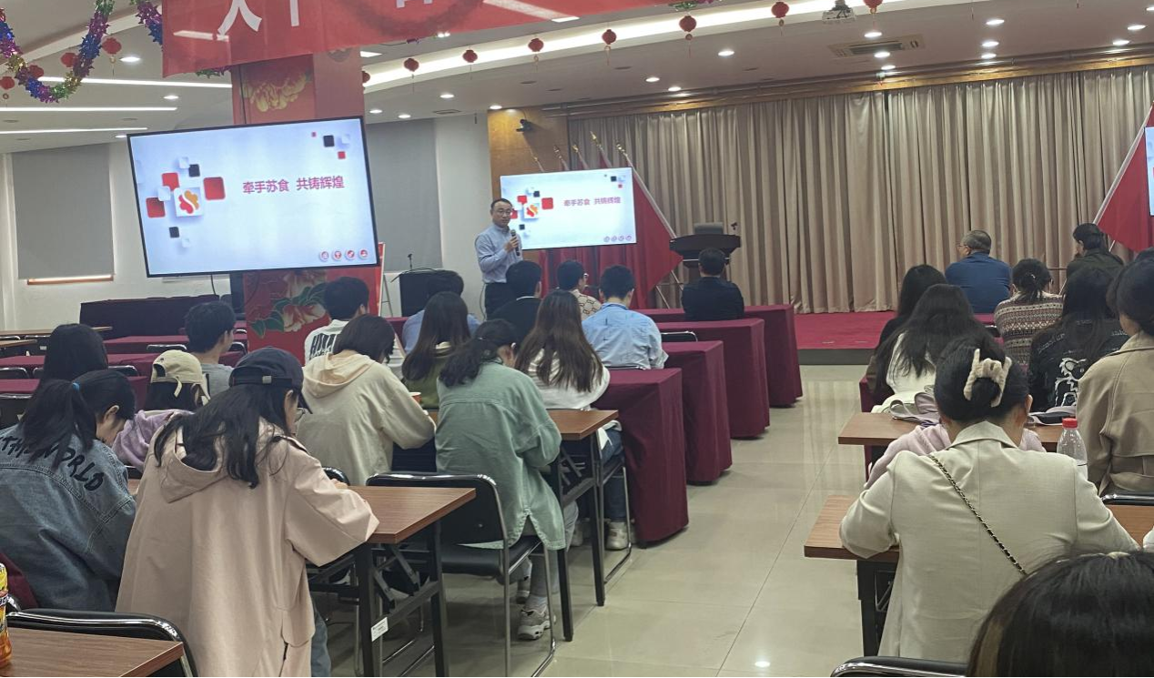 2023年10月10日下午,在朱战国教授、丁雪老师以及张彤老师的带领下,2020级工商管理专业全体本科生来到位于南京市浦口区的苏省食品集团(苏食集团)有限公司开展实践考察学习。本次实践教学活动旨在让工商学子深入了解农商企业经营活动与发展历程,感受现代农商企业的新发展与新布局。