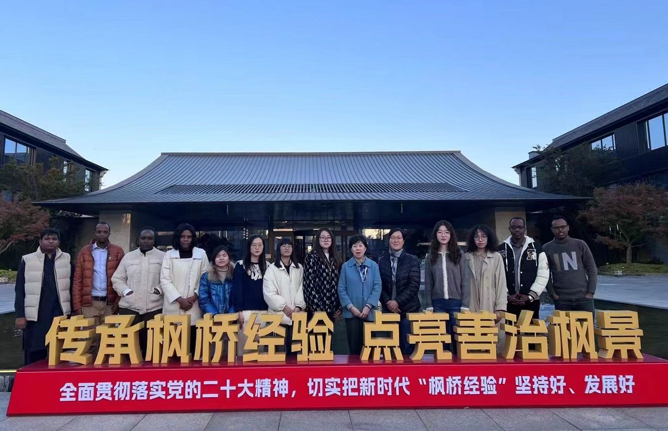 师生一行走近枫桥学院,体验了枫桥学院的培训氛围,感受中国新农村的新发展、新变化,并实地了解了枫桥镇的农村现代化建设情况。在参观途中,韩纪琴教授向学生们讲解了具有中国特色、时代特征的“枫桥经验”。