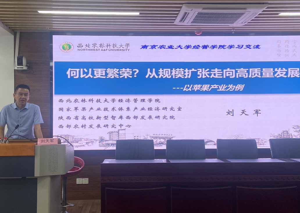 6月21日上午10点,学院“卜凯论坛·学术前沿”第336期在第三实验楼706报告厅举办。西北农林科技大学副校长、yl7703永利官网教授刘天军应邀作题为“何以更繁荣:从规模扩张走向高质量发展”的专题讲座,讲座由朱战国教授主持,纪月清教授、杨宗耀老师、张彤老师出席本次会议。