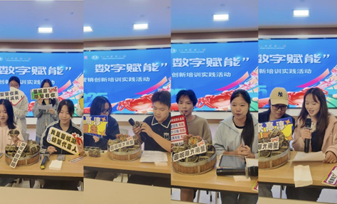 当日下午,师生们还前往固城湖螃蟹养殖基地,实地查看螃蟹生长环境,与养殖户面对面交流,了解螃蟹当前的流通实际和市场情况,体会农产品运销中的“交易职能、实体职能和辅助职能”。随后,基地导师、电商运营专家卞老师分享了《苏货直播助农生态平台助力乡村振兴》讲座,并实操演示电商带货技巧与要领。同学们热情高涨,纷纷主动上台尝试模拟带货,快速掌握了直播带货的核心技巧。卞老师对每组同学的表现进行了专业点评和指导。