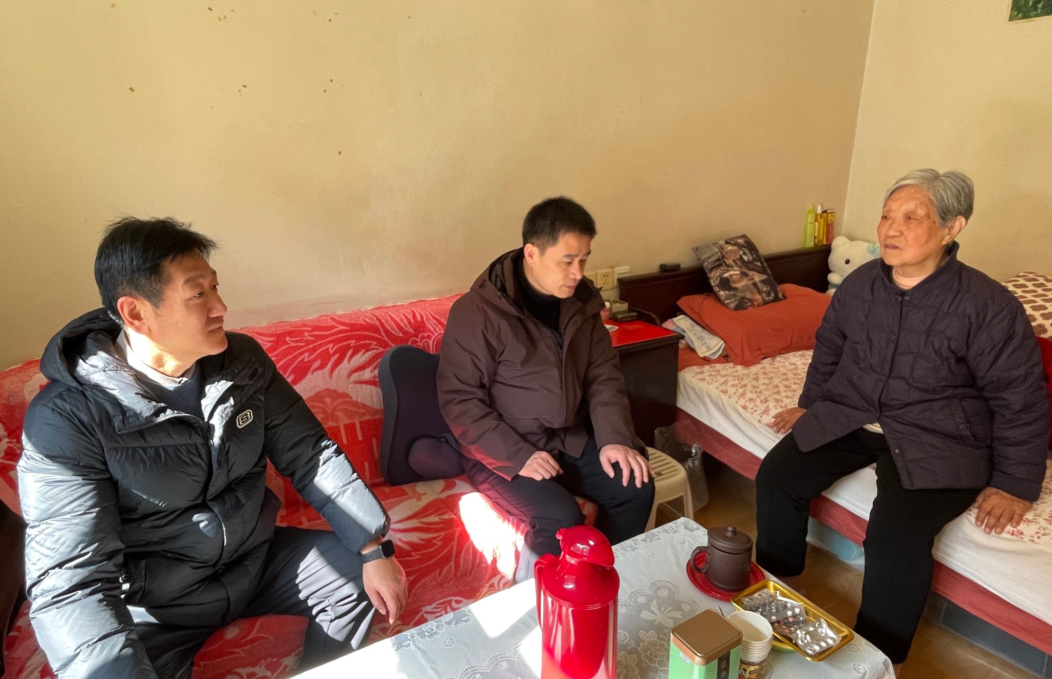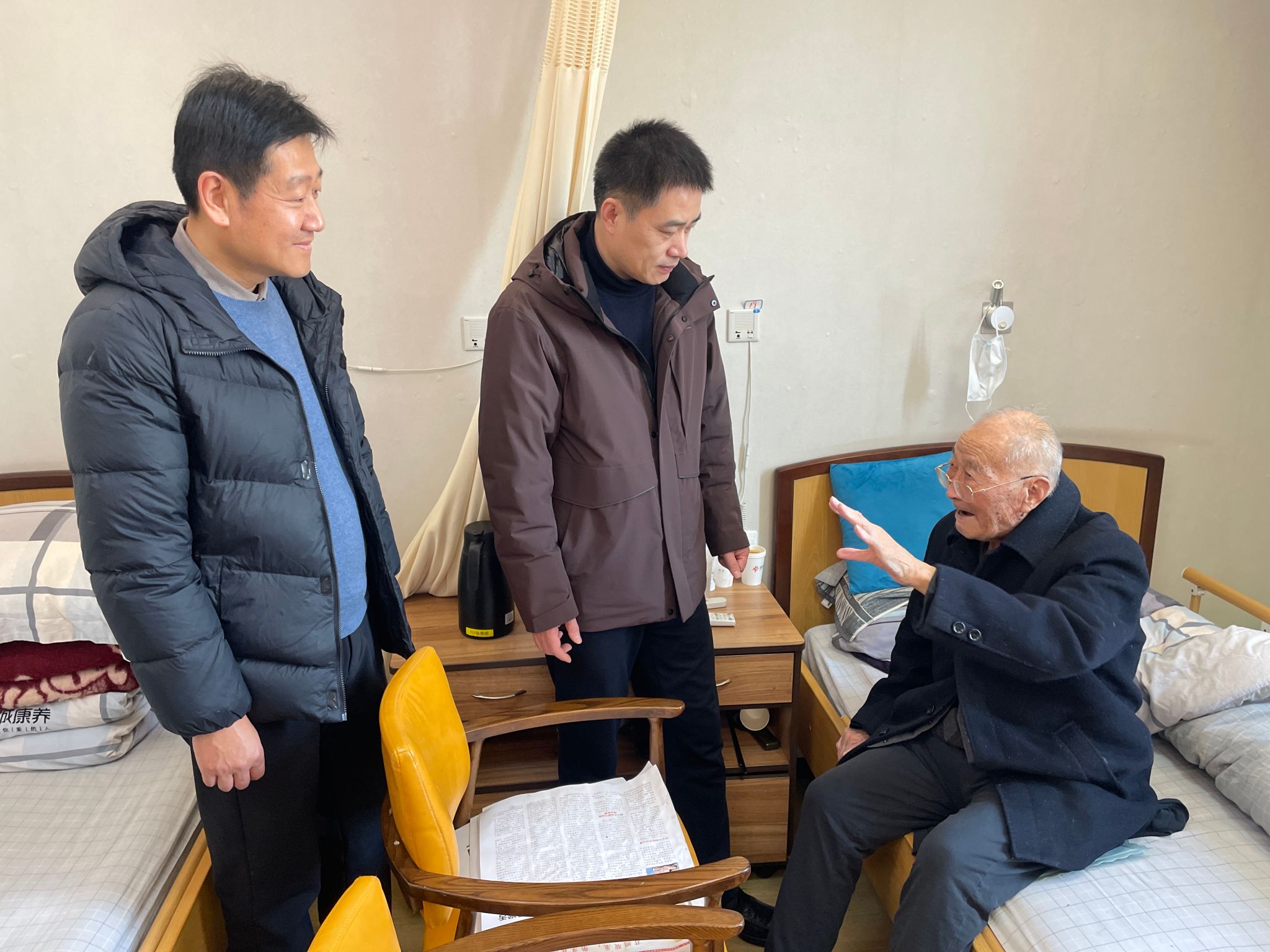 走访慰问中,孙雪峰、张树峰亲切询问老同志们的身体情况和生活状态,并认真听取了他们对学院未来发展的意见和建议。细心叮嘱他们要保重身体,遇到困难及时向学院反映;并提前为他们送上新年祝福,祝他们新春愉快、健康长寿、阖家幸福。老前辈们对学院和领导的关怀慰问表示感谢,并为学院过去一年各项工作取得的新成绩感到由衷高兴,并衷心祝愿学院新的一年再创佳绩。