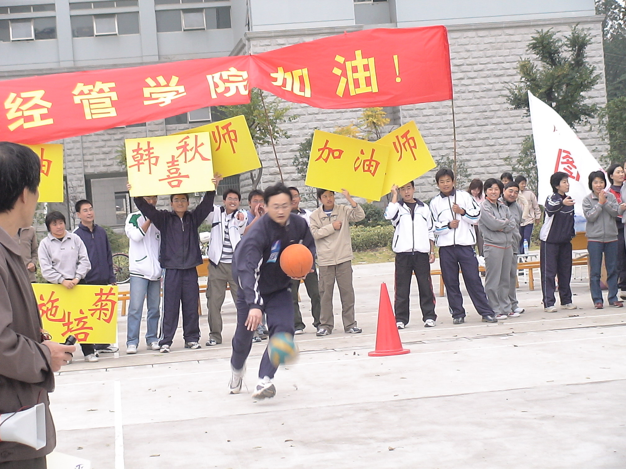 听,比赛中口号喊的最响的绝对是我们经管院学生。在学生会干部的号召下,他们个个精神饱满,口号整齐有力,引来了他院老师无尽的赞许。