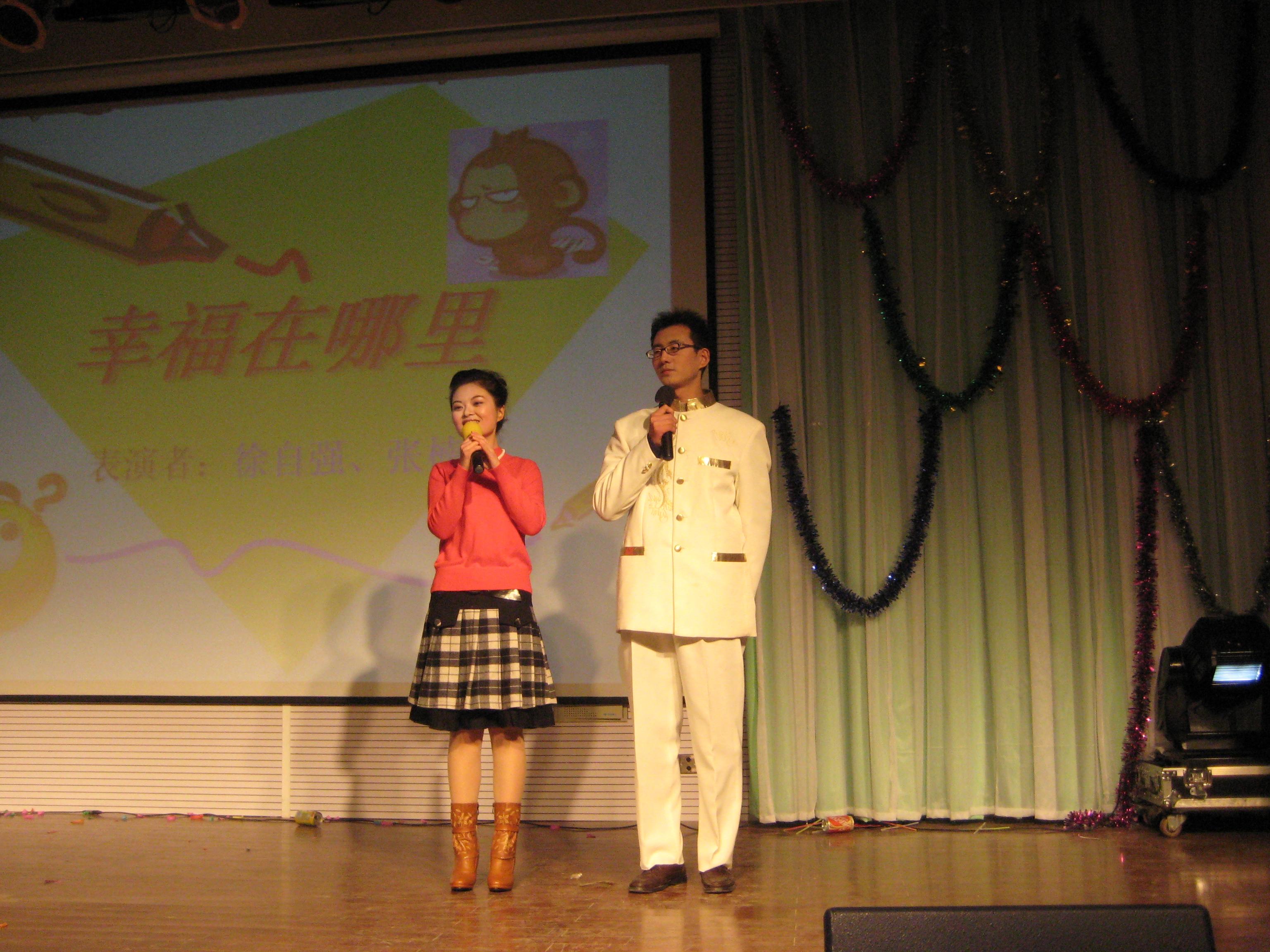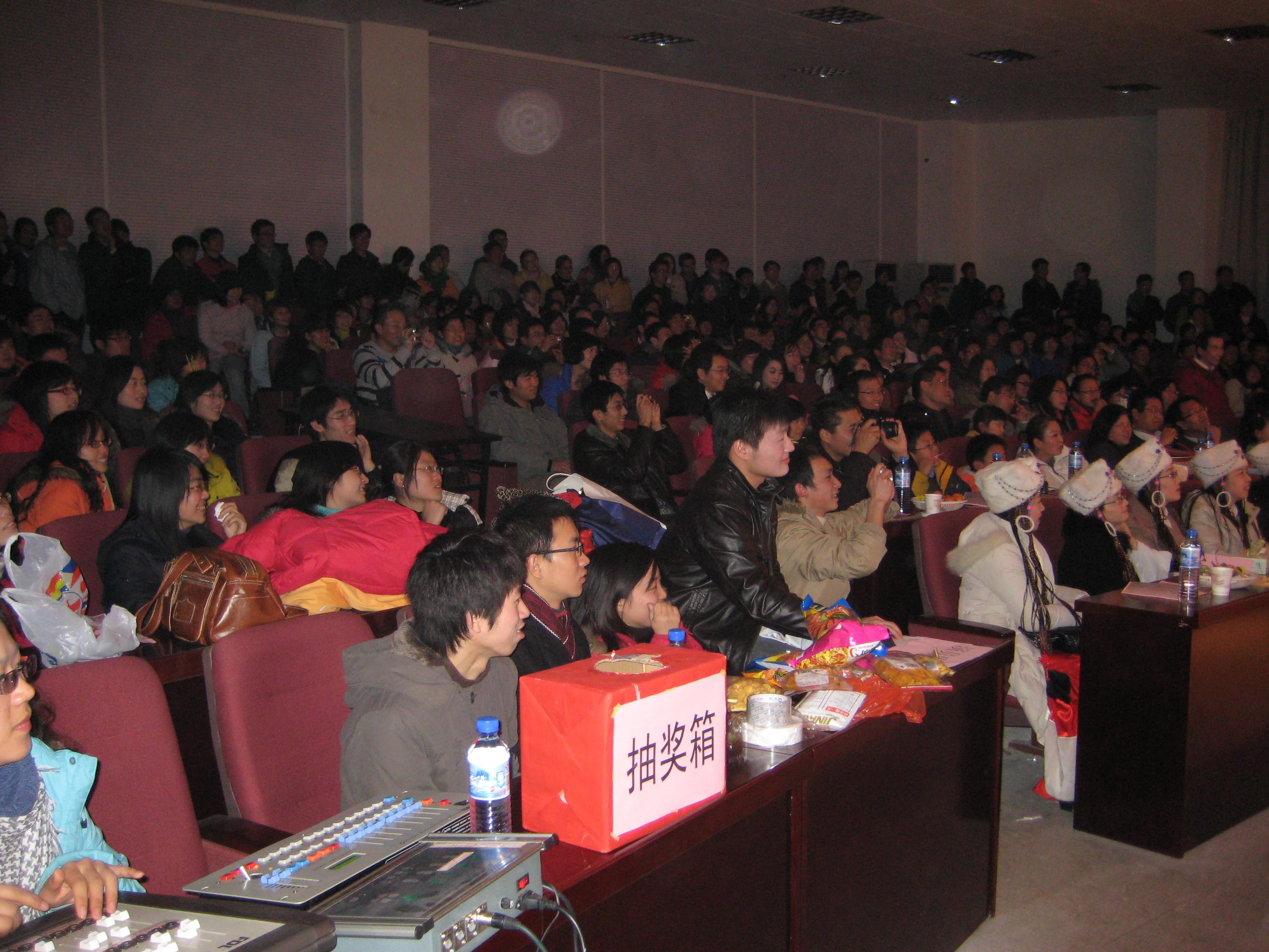 晚会现场精彩纷呈、节目形式丰富多彩;弥幻的灯光、绚丽的舞姿与幽默的语言给现场所有人以耳目一新之感。不时,晚会在一段开场秀中拉开了帷幕。别具风情的现代舞《Anymotion》,令现场的同学们徜徉于美妙的舞蹈海洋,小品《嫦娥招亲》引起在场同学的热烈反响;相声《幸福在哪里》“说”得在场的同学与老师笑声不断。小品《面试》讲述了一段“求职“的故事,萦绕于每位学子之间。歌伴舞《勇气》融舞蹈与演唱于一体,带给人全新的视听感受。独具特色的藏舞《高原节日》仿佛使现场的每位同学置身于遥远、神奇的西藏,沉浸在藏人独特的节日庆贺之中;无论是独唱、合唱还是手风琴表演……,均掀起了现场一个又一个的高潮和亮点。台下观众时而会心大笑,击掌而和。
