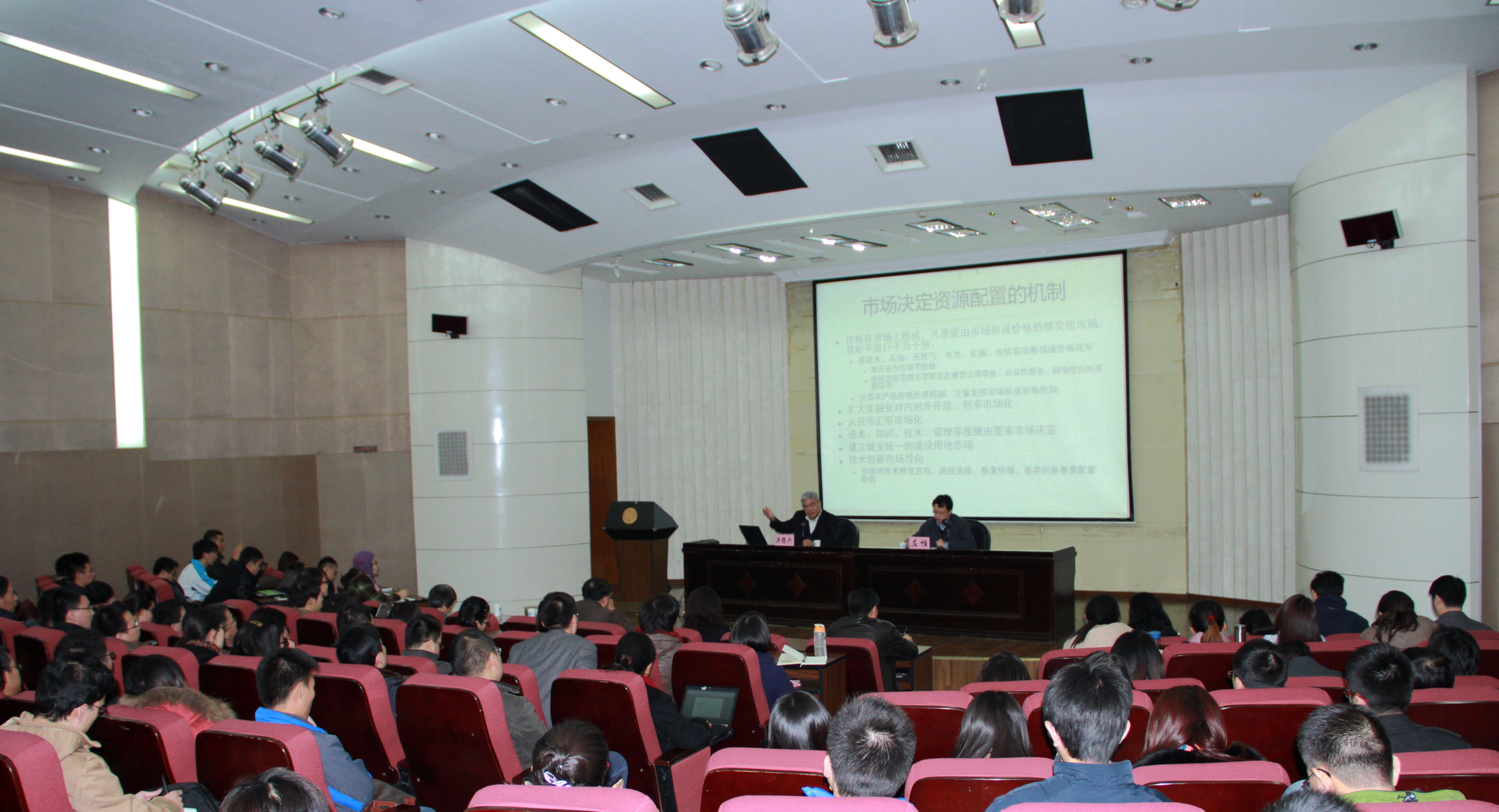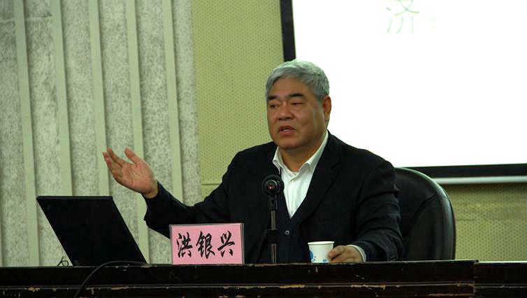 11月30日下午,著名经济学家、南京大学党委书记、江苏省哲学社会科学界联合会主席洪银兴教授应邀来校作题为《学习党的十八届三中全会关于经济改革的新精神》的报告。副校长徐翔、党委办公室主任刘营军、经管院党委书记陈东平、副院长应瑞瑶、副院长朱晶、院党委副书记卢忠菊及300余名师生聆听了报告。报告会由我校党委书记左惟教授主持。