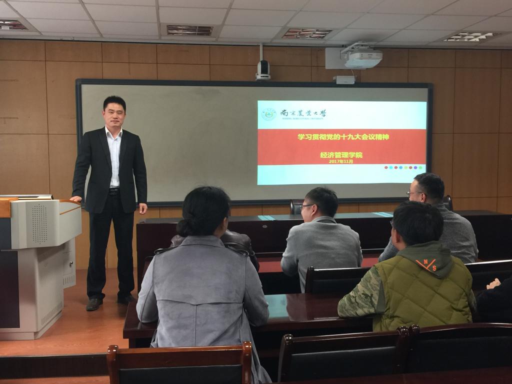 11月8日下午,永利官网召开教职工大会,组织教职工学习贯彻党的"十九大"精神,会议由院长朱晶主持,学院党委副书记(主持工作)孙雪峰做《学习贯彻党的"十九大"精神》专题讲座。