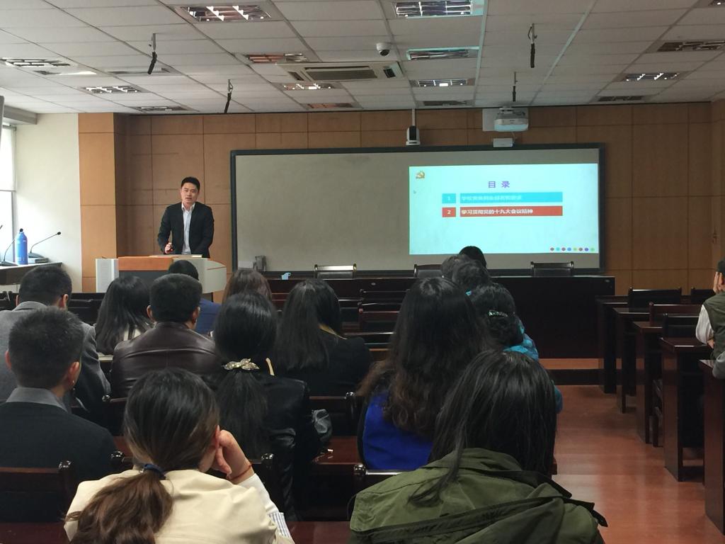 随后,孙雪峰对党的“十九大” 的主要成果和主要历史贡献做了详细解读。他认为,党的“十九大”开辟了时代新主题,确立了历史新方位,做出了理论新概括,明确了发展新征程,指出了矛盾新变化,开创了党建新境界。他要求全体教职工要认真领会学习党的十九大精神,真正做到学起来、教起来、传起来、研起来、干起来和实起来,以实际行动学习宣传贯彻十九大精神、推动各项工作的成效。