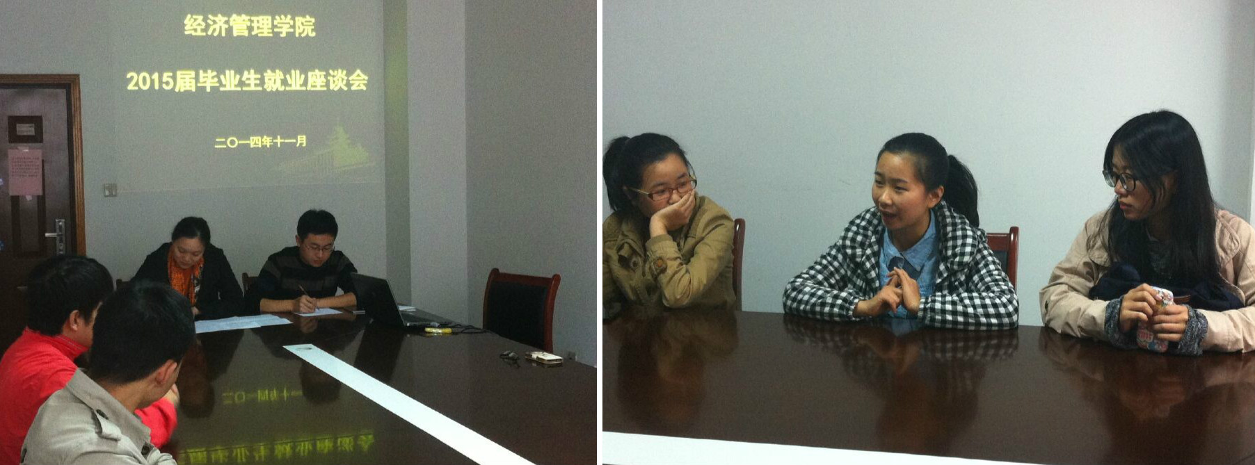 11月13日下午,经管学院2015届毕业生就业系列座谈会在逸夫楼5082如期举行。学院辅导员周琨、学院兼职辅导员郑建、王越以及毕业生代表参加座谈。