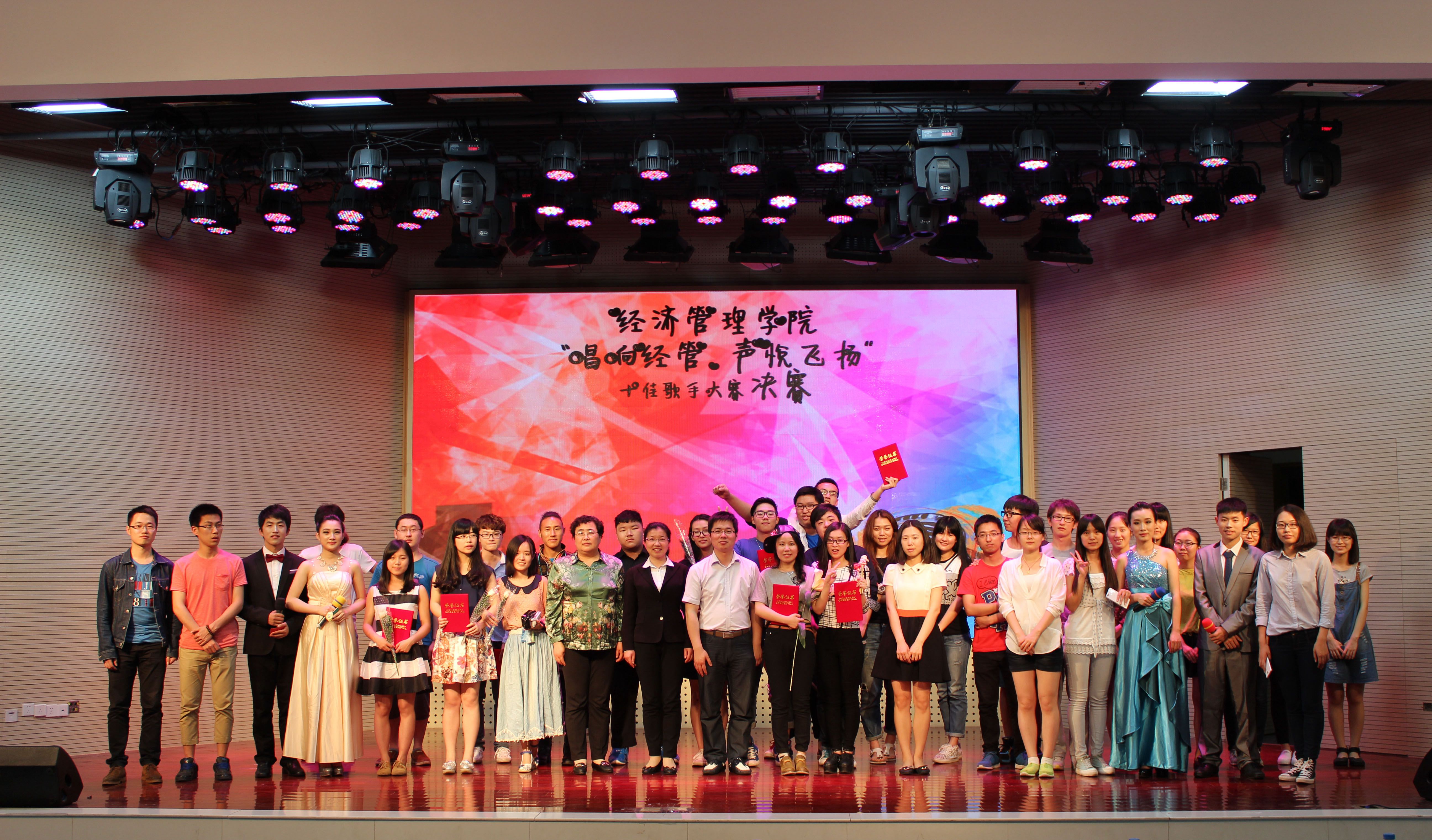 最终经管实验的陈凯诚同学夺得冠军,陈子越,岗伟同学分获二三名,其余选手均获得十佳歌手及最佳台风奖最佳人气奖。
