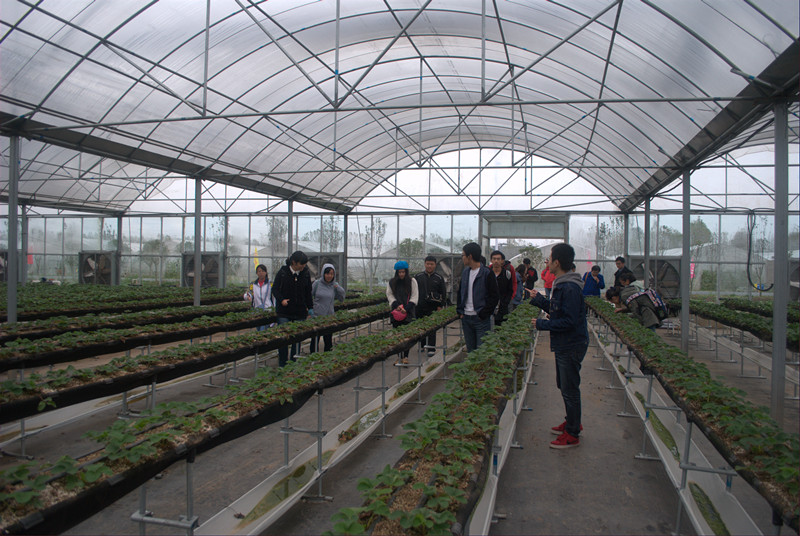 在八卦洲现代农业园区,学生们在感慨园区现代化设施的同时,实地参观了园区先进的现代化农业灌溉技术和甜菜、杭椒、花菜、西红柿等农作物新品种,并了解到园区先进的经济发展模式。在南京虹彩花卉有限责任公司,学生们实地了解到郁金香的种植、培育及销售,并重点就名贵花卉的市场营销问题与企业负责人进行了深入探讨。