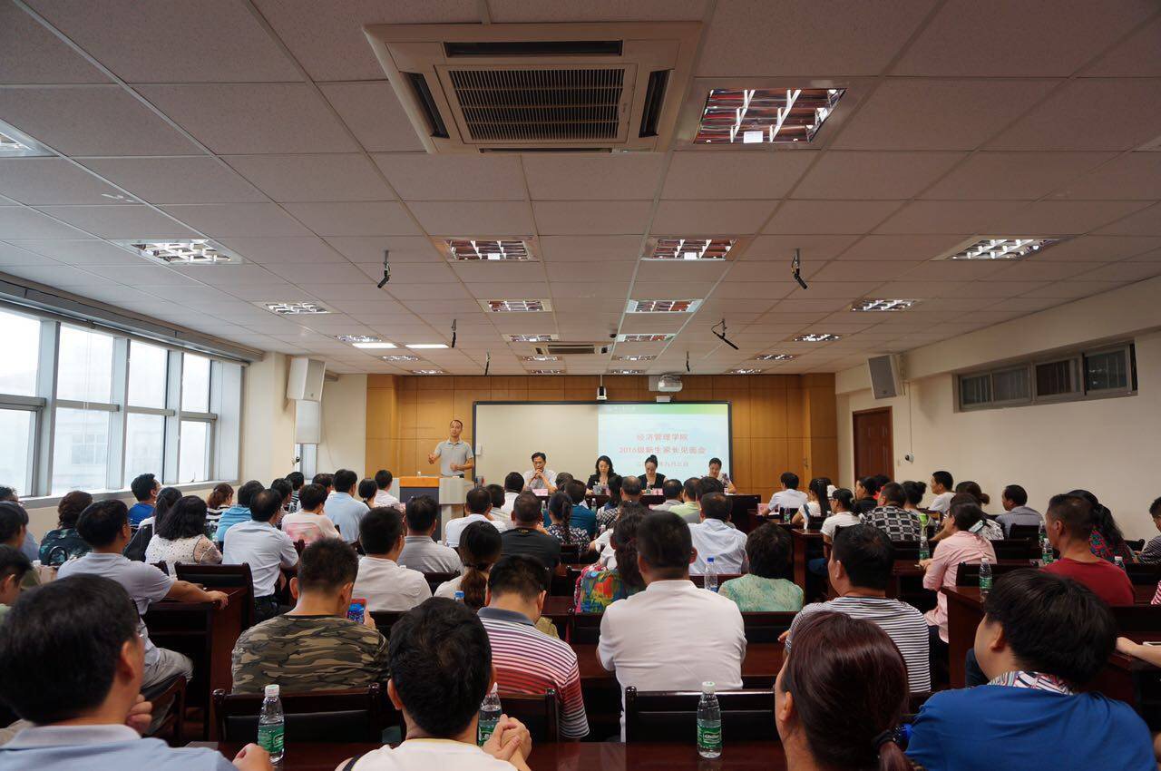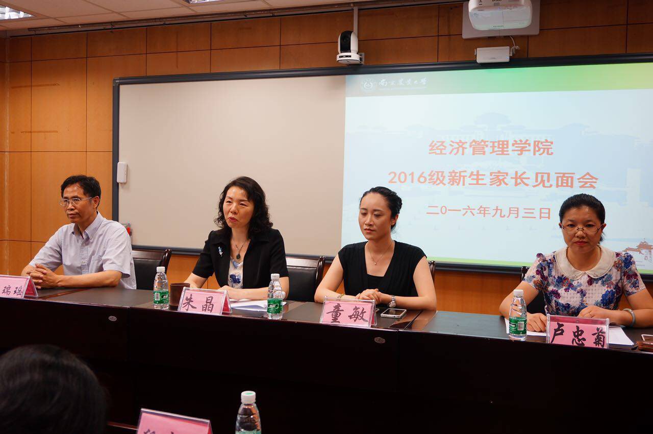9月3日下午,永利官网2016级新生家长见面会于逸夫楼5045报告厅召开。学院院长朱晶教授、应用经济学科点点长应瑞瑶教授、国际教育学院副院长童敏、学院党委副书记卢忠菊出席会议,各系正副系主任、新生班主任老师及本科生辅导员参加会议。会议由卢忠菊主持。